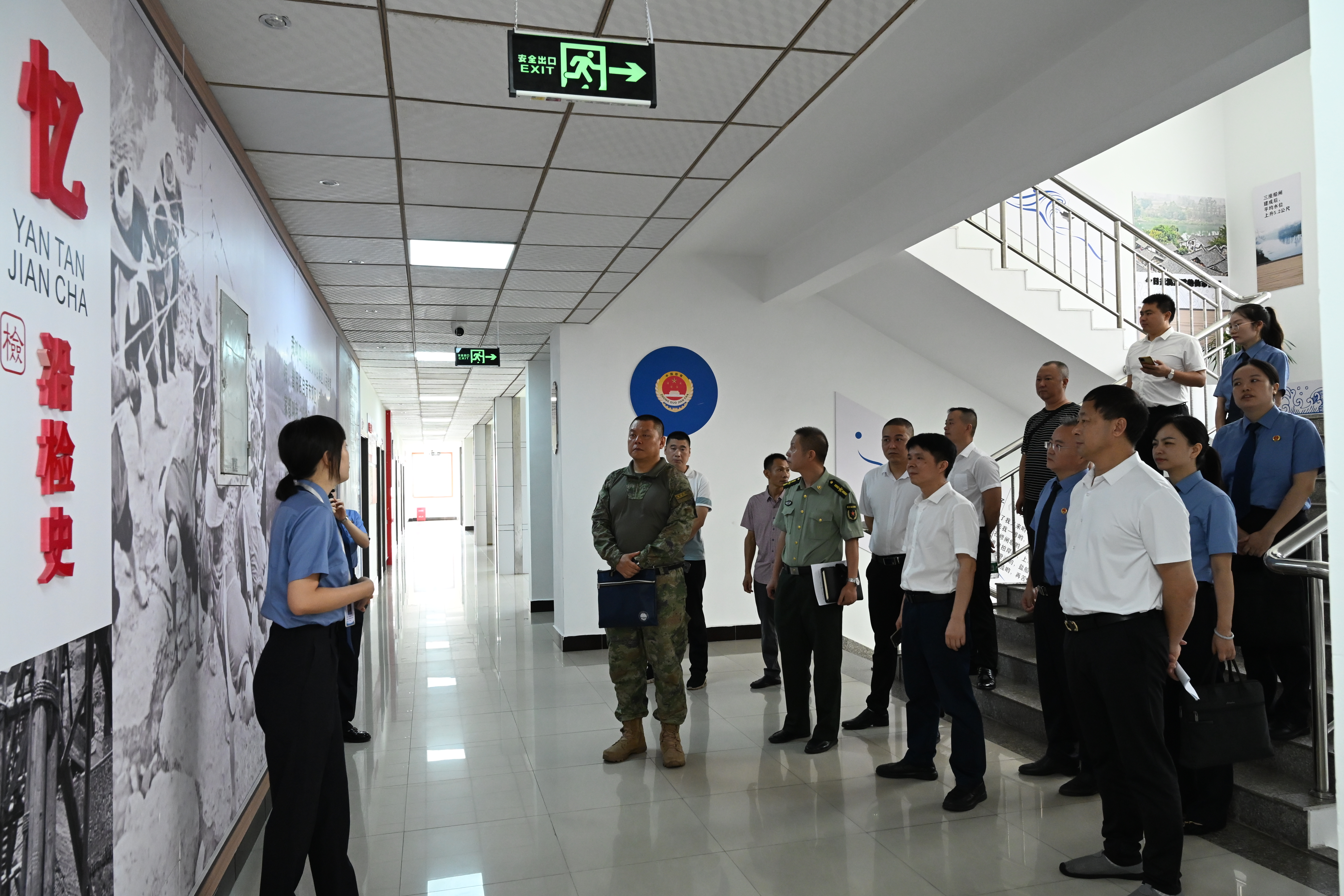 座谈会后,在讲解员的带领下,与会人员先后参观了检察文化长廊、沿滩检察12309检察服务中心、案件管理中心等办公办案场所,近距离感受检察机关办公办案环境,详细了解检察职能。